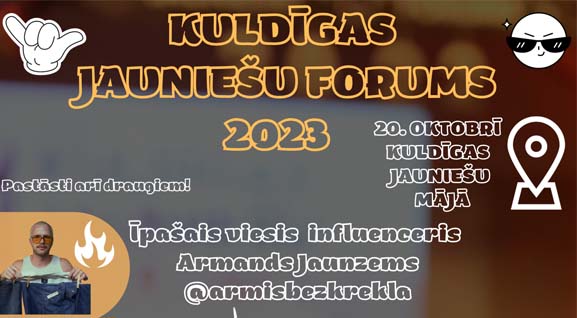 20. oktobrī Kuldīgas jauniešu forums ar influenceri, bezmaksas ēdienu un fotobūdu Lasma Reinfelde20.09.2023 Jauniešiem