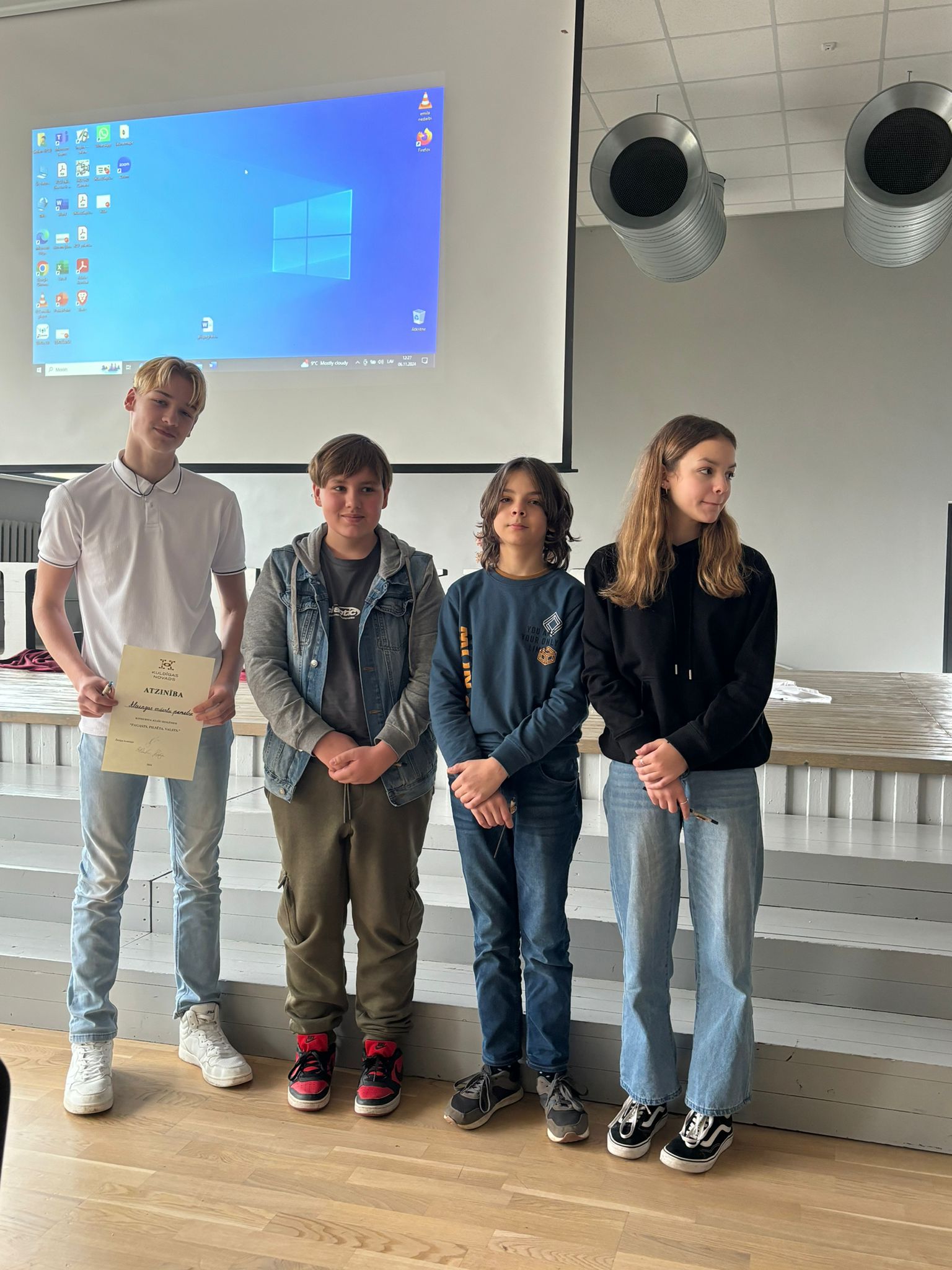 Atzinību – Alsungas Mākslu pamatskolas komanda (Lauma Ivanovska, Mikuss Ungurjans, Kārlis Šmidbergs, Edvards Cvetkovs, skolotāja Inga Liberģe).