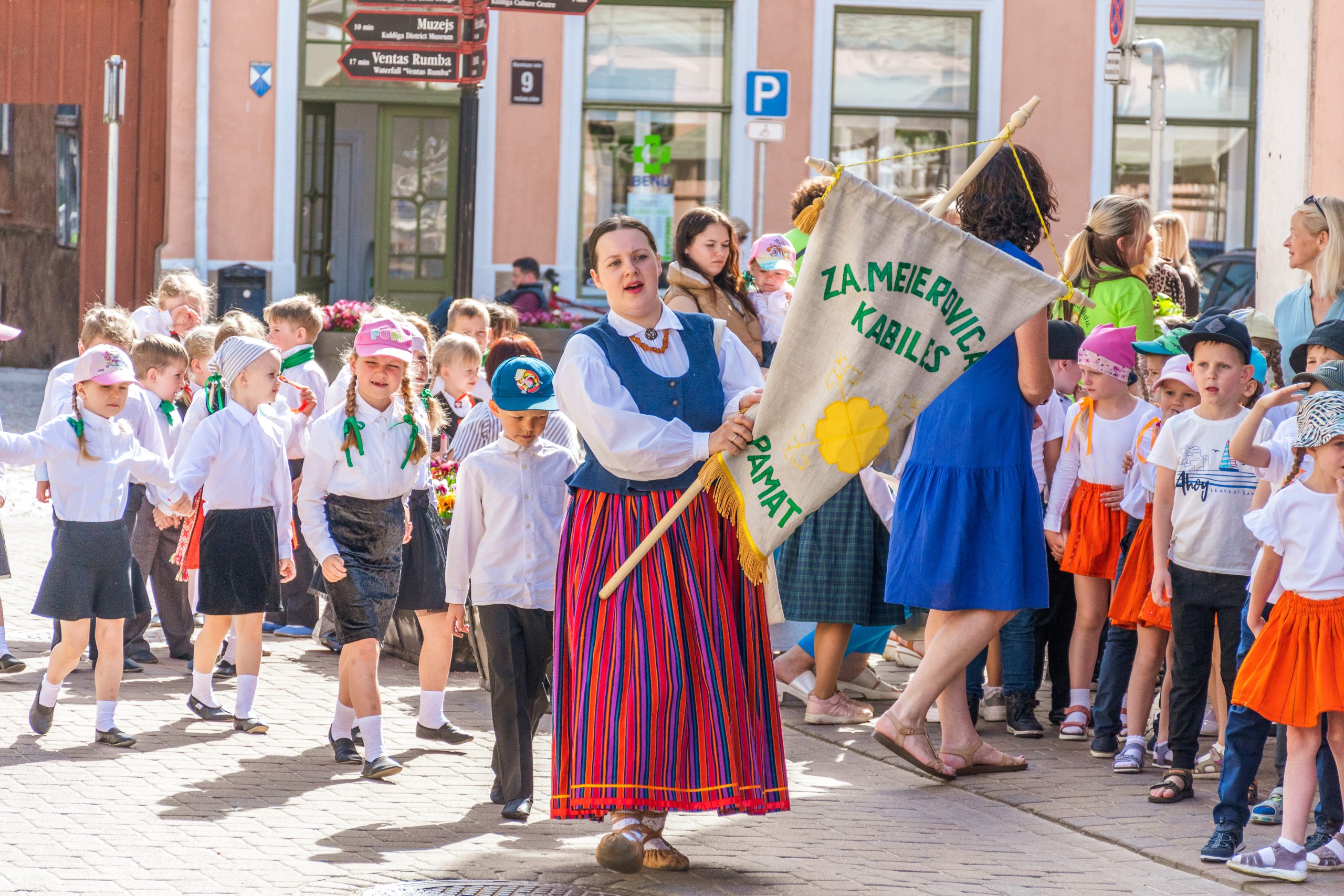 Mazie dziesmu un deju svētki tika ieskandināti ar svētku gājienu. Tas sākās no Liepājas ielas gala (no kajenīcas “Kursas Zeme”), tālāk dalībniekiem virzoties pa Liepājas, Smilšu un Pētera ielām, bet galamērķis – Pilsētas estrāde. Mazos dziedātājus un dejotājus gājienā atbalstīja arī prāvs vecāku un līdzjutēju pulks. Priecīgo brīdi, atrašanos un uzstāšanos uz Pilsētas estrādes skatuves, varēja izjust vairāk nekā 400 jaunie dziedātāji un dejotāji.