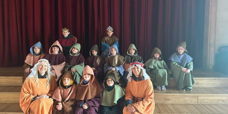Sākumā mūks ar kalponi bērnus izveda cauri vidusslaikiem, iepazīstinot ar pils vēsturi, arhitektūras detaļu simboliku un celtniecības noslēpumiem. Uzzinājām par galma iemītniekiem un viņu manierēm. Skolēni bija izbrīnīti par tā laika stingrajiem noteikumiem. Pēc ekskursijas bērniem spilgti palika atmiņā soda pagrabs, kur ieslēdza sievietes ar sarkaniem matiem, jo viņas uzskatīja par raganām, tāpat tur ieslodzīja visus, kas nepakļāvās barona iegribām.