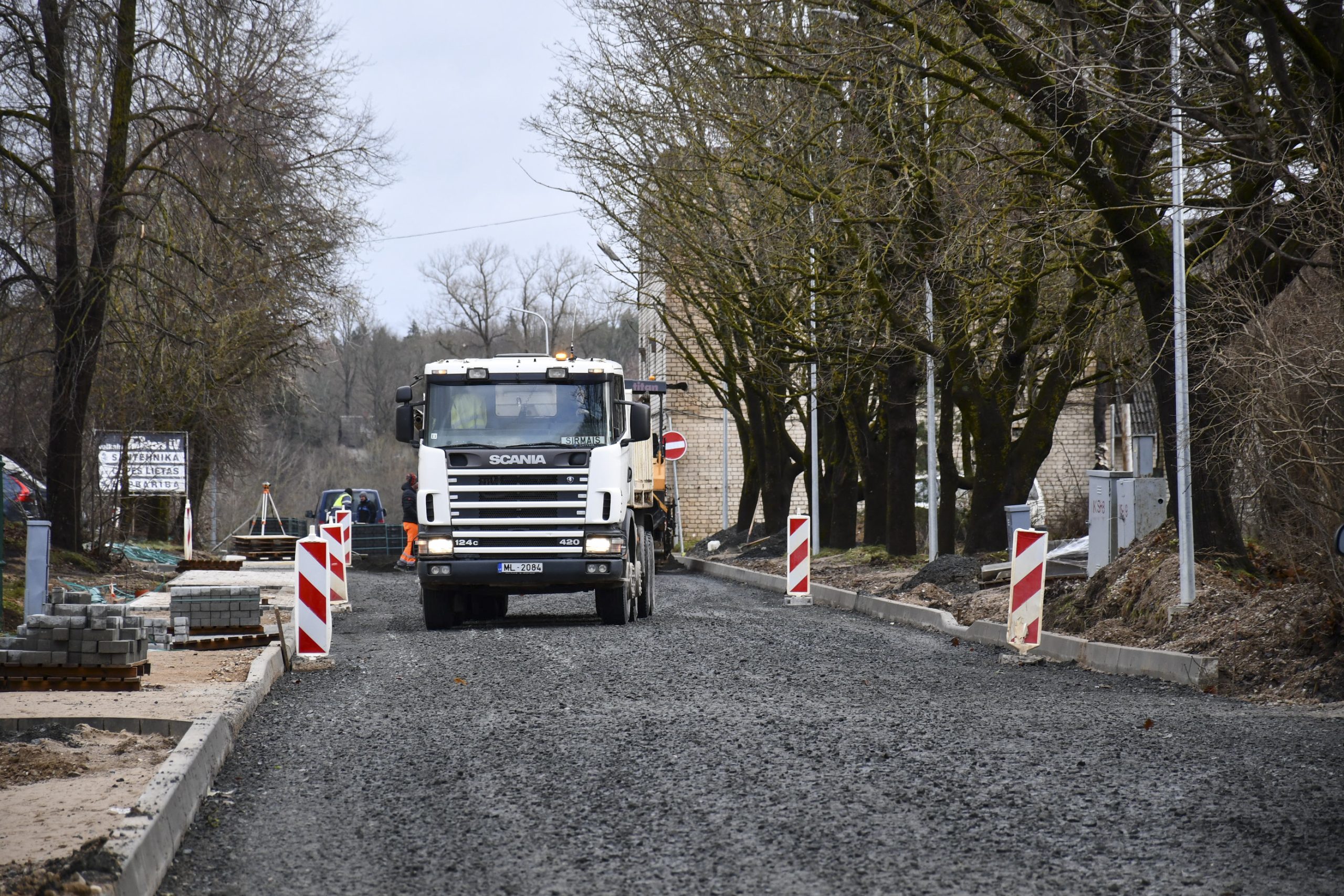 “Pēc formalitāšu nokārtošanas tikai septembrī varējām sākt būvdarbus – izbūvēt apakšzemes komunikācijas, apmales, ceļa seguma ieklāšanas darbus. Darām visu, lai darbi neapstātos un mēs pabeigtu tos atlikušajās termiņā. Plānus kavēja ziema, bet mēs būvniecību turpinām arī šādos apstākļos. Pielietojam tvaika kausēšanas iekārtas, mainām sasalušo grunti, lai varētu sagatavot pamatni seguma ieklāšanai. Darbus sarežģī arī tas, ka mums jānodrošina nepārtraukta transporta plūsma. Tāpēc, lai iespēju robežās netraucētu uzņēmējdarbībai un smagā transporta piekļuvei – mums  jāstrādā pa joslām un maziem posmiem. Ja laikapstākļi nebūs labvēlīgi, pēc brauktuvju pabeigšanas, labiekārtošanas darbus turpināsim pavasarī – izbūvēsim ietves, apzaļumosim piegulošo teritoriju, ” saka M. Grundmanis.