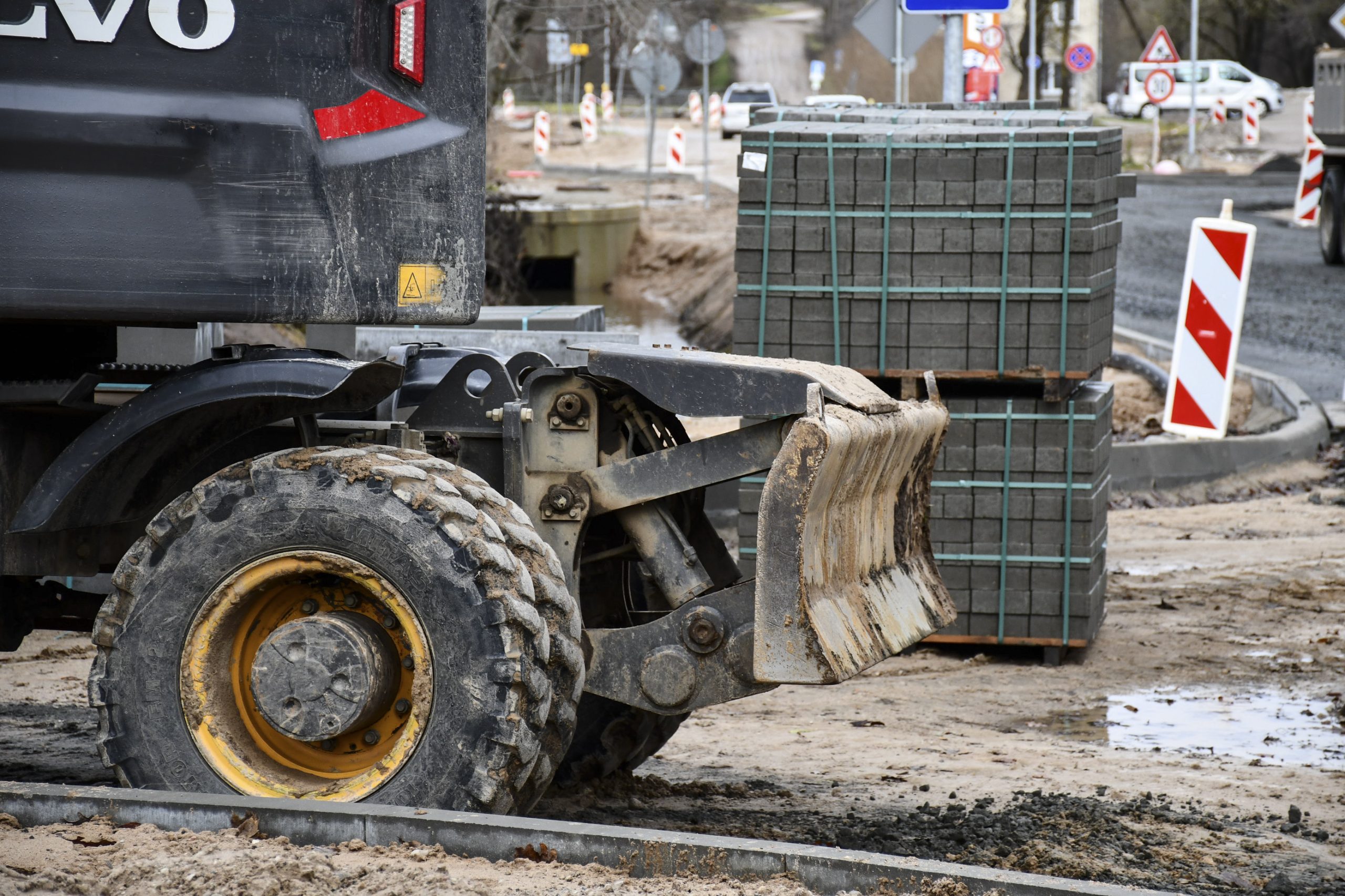 “No kopējā darbu apjoma šobrīd paveikti 70%. Mūsu mērķis ir tuvākajā laikā pabeigt brauktuves, lai autovadītājiem atvieglotu pārvietošanos, uzņēmēji varētu netraucēti nokļūt darba vietās un smagais transports piekļūt ražošanas teritorijām.” Skaidro SIA ARB 7 pārstāvis Māris Grundmanis.