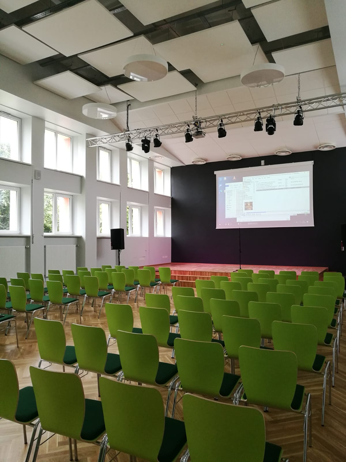 Skolas pasākumu zāles ietilpība ir 200 cilvēku, arī tur ir traucēta ventilācija, tāpēc pasākumu laikā šie galvenie mikroklimata rādītāji – gaisa temperatūra, gaisa relatīvais mitrums, gaisa plūsmas ātrums – ir nepietiekami.