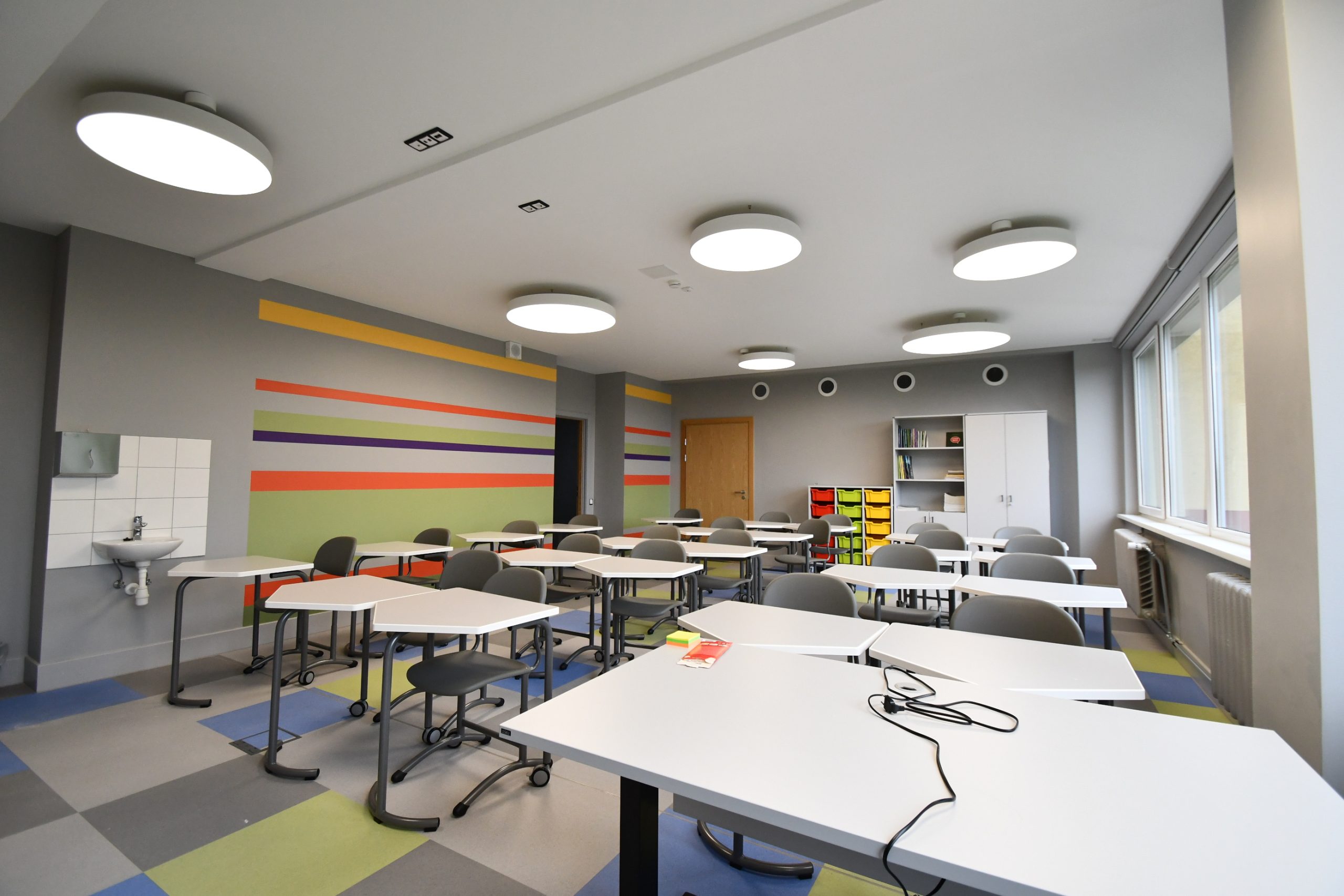 Skolas gaiteņi nav aprīkoti ar sensoro apgaismojumu, kas ļautu taupīt elektroenerģiju.