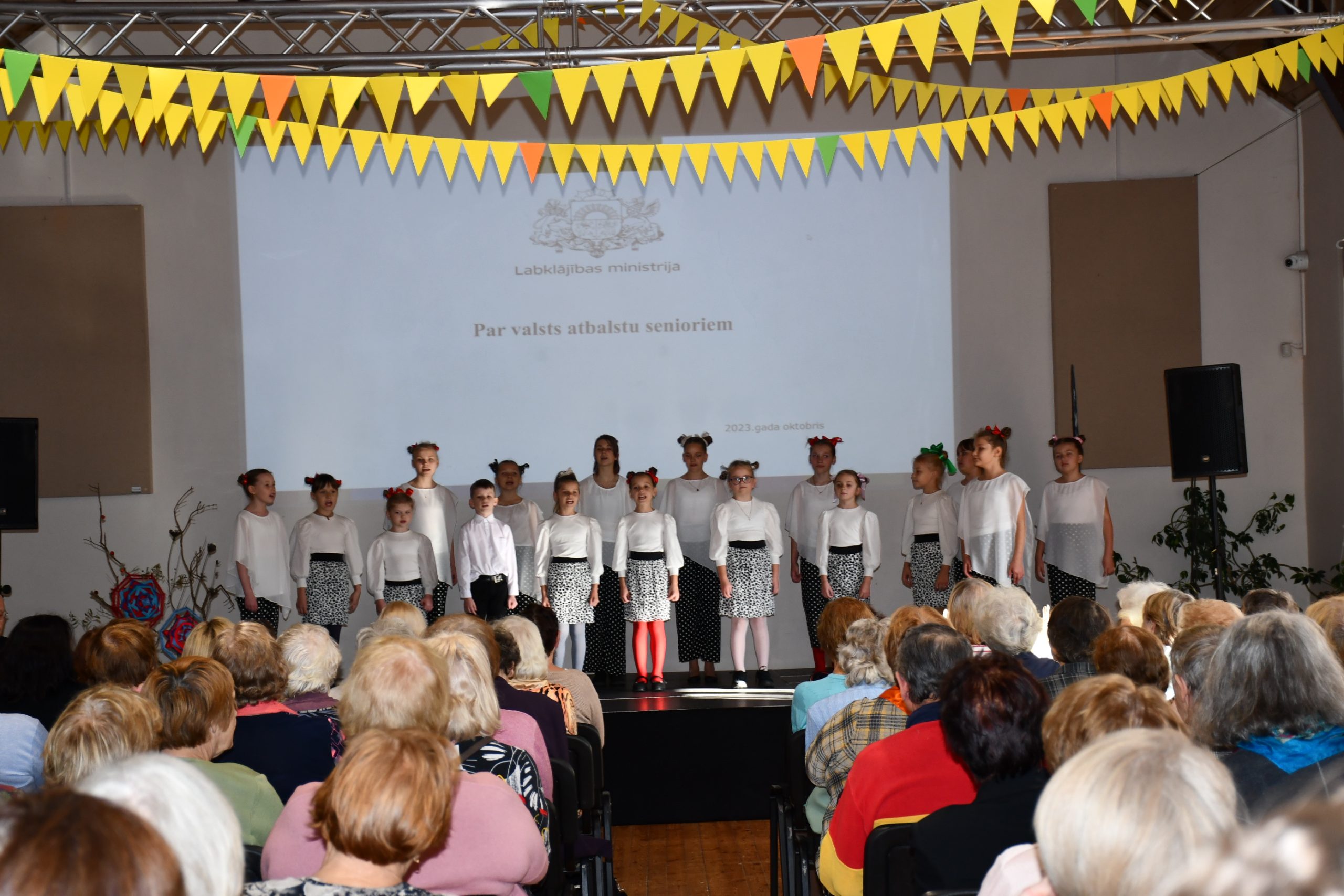 Seniorus īpašajā notikumā sveica Kuldīgas novada domes priekšsēdētāja Inese Astāsevska un izpilddirektores pienākumu izpildītāja Agnese Buka. Ar muzikāliem priekšnesumiem Seniorus priecēja Indriķa Zeberiņa Kuldīgas pamatskolas vokālie ansambļi “Kuldīgas Liesmiņas” un “Kuldīgas Dzirkstelītes” Janas Paipas vadībā.