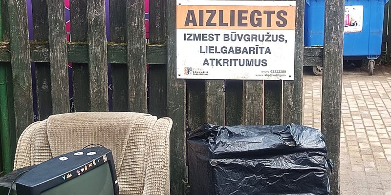 Daudzdzīvokļu māju atkritumu laukumos nedrīkst izmest lielgabarīta atkritumus, riepas, elektroniku utt. Šādus atkritumus aicinām nodot Dārzniecības ielā 9.