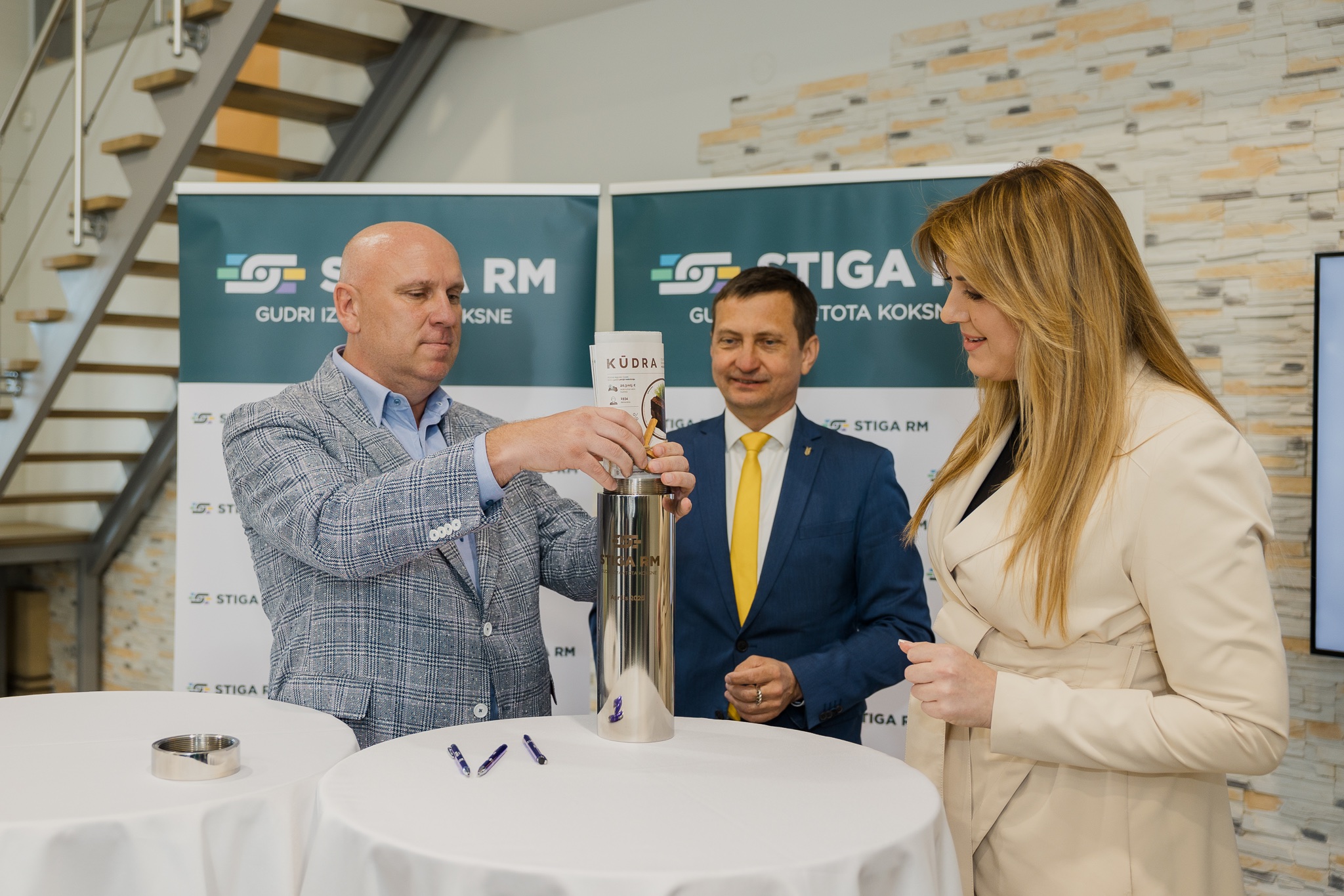 Piektdien, 25. aprīlī, topošās ražotnes pamatos svinīgi tika iemūrēta kapsula ar vēstījumu nākamajām paaudzēm. Pasākumā piedalījās zemkopības ministrs Armands Krauze, Kuldīgas novada domes priekšsēdētāja Inese Astaševska, kā arī “Stiga RM” vadības komanda.