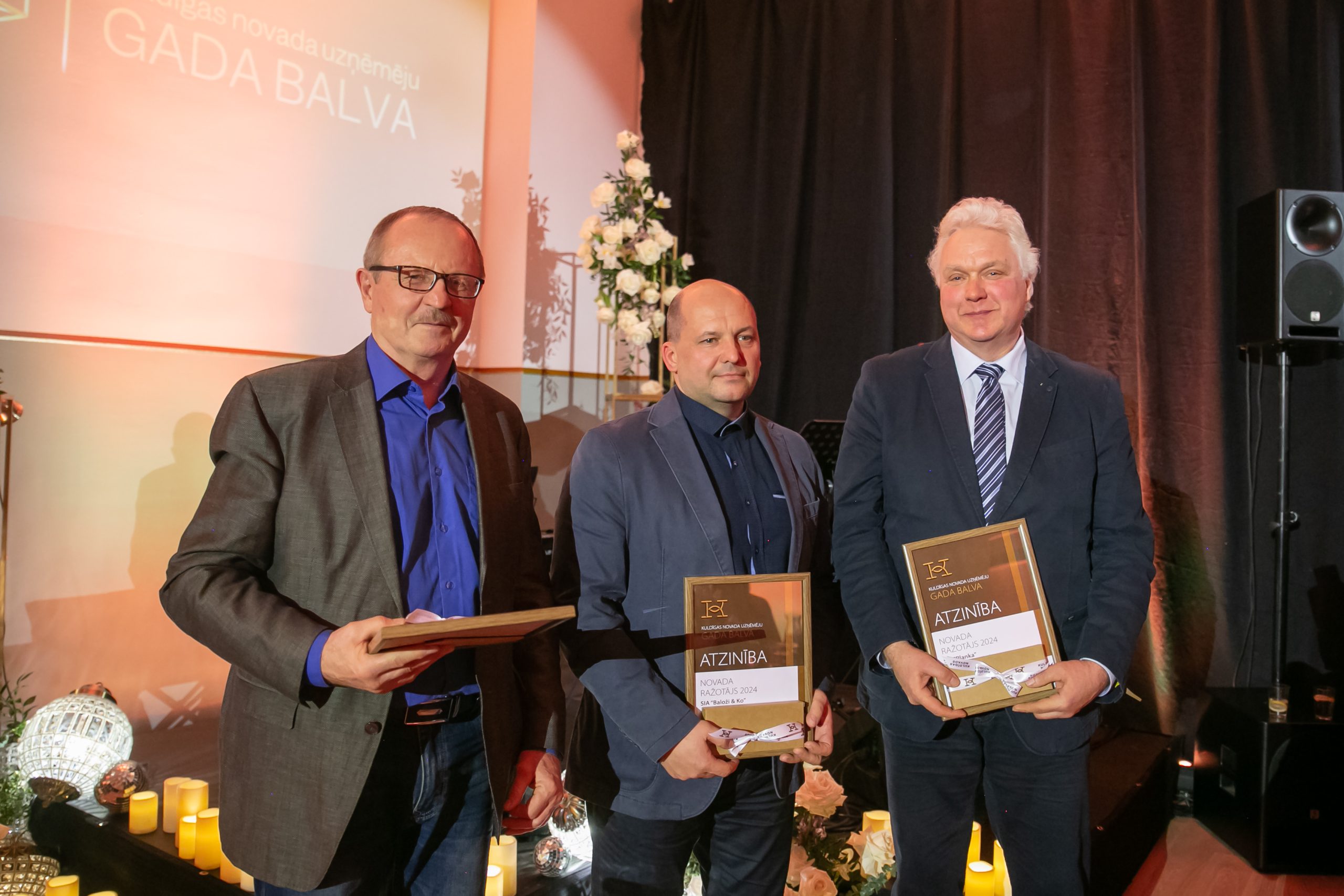 Nominācijā “Novada investīcija būvniecībā 2024” pretendentus izvirzīja nevis iedzīvotāji, bet tika vērtēts uzņēmēju ieguldījums ēku būvniecībā, ražotnes un uzņēmuma attīstībā. Godinot uzņēmumus, kuru ēkas nodotas ekspluatācijā 2024. gadā ar finansiāli vislielāko ieguldījumu novada teritorijā un būtisku ieguldījumu savas uzņēmējdarbības vides attīstībā, balvas saņēma – AS “Latvijas finieris,” kurš pērn atvēris finiera ražotni Kuldīgā, SIA “Stiga RM,” kurš pārbūvējis ražošanas ēku, kā arī SIA “Vēvers,” kurš paplašinājuši ražošanu, investējot jaunas ražotnes, biroja ēkas un katlumājas būvniecībā.