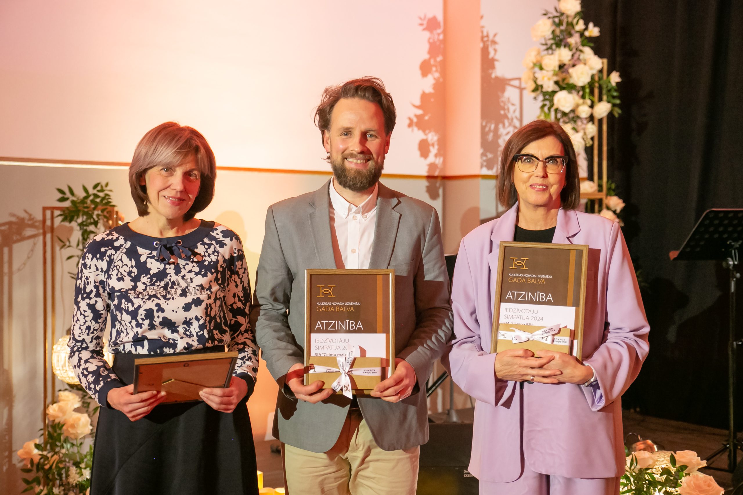 “Novada iedzīvotāju simpātija 2024” ir viena no sirsnīgākajām konkursa nominācijām – tajā izvirzīti novadniekiem īpaši iemīļoti uzņēmumi, kas snieguši personīgu attieksmi, laipnību un kvalitatīvu pakalpojumu. Balvu saņēma Kuldīgas uzņēmumi – laikraksts “Kurzemnieks”, maiznīca SIA “Celmu maize”, Kancelejas preču veikals “Livona BP”.